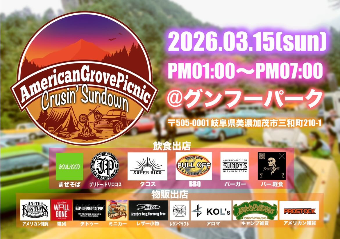 AMERICAN GROVE PICNICに出店させていただきます
